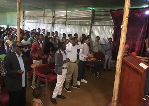 Die Gemeinde in Bati Haromaya ist etwas wirklich Besonderes. Der Ort, der gar nicht weit von Dire Dawa entfernt liegt, ist geprägt durch die Universität, deren Gelände sich weit durch die ganze kleine Stadt zieht. Die Gemeinde, die hier entstand, war daher von Anfang an mit der Universität verbunden und bestand aus gläubigen Dozenten und Studenten. Es zeigte sich, dass die evangelistische Arbeit unter diesen Studenten sehr fruchtbar war. Die Gemeinde wuchs schnell, immer mehr junge Leute kamen zum Glauben, sodass ihre einfache Wellblechhütte (bei Hitze und Regen ohnehin katastrophal!) nicht mehr ausreichte. Diese Gemeinde hatte natürlich keine eigene finanzielle Kapazität und war auf Unterstützung angewiesen.