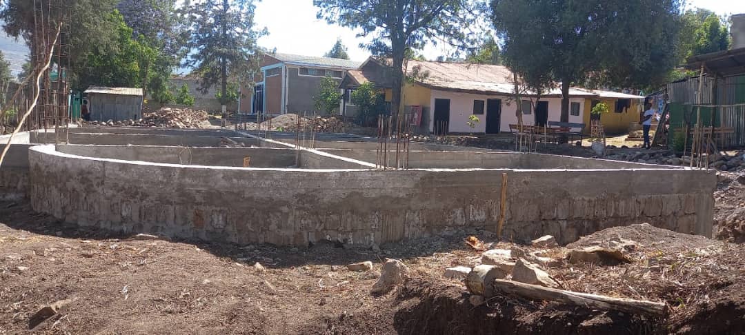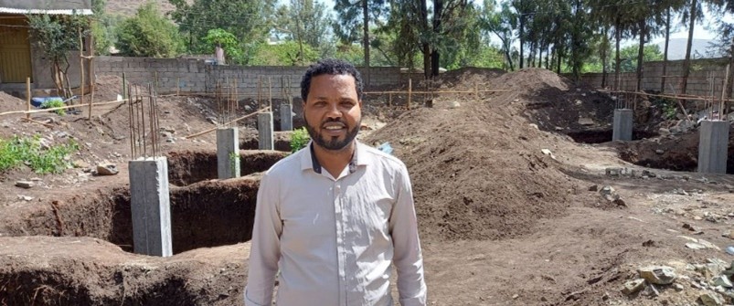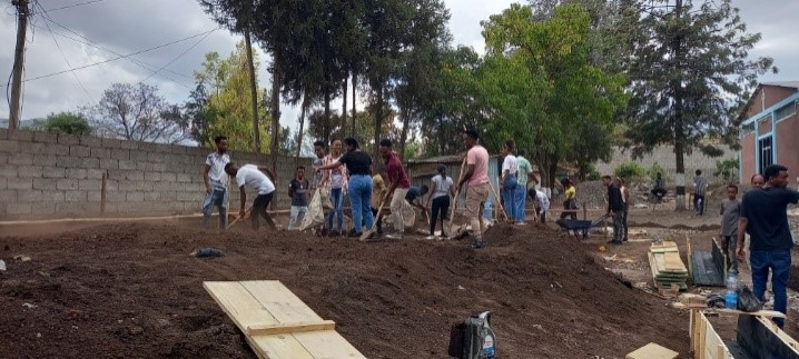 Für diesen Bau mussten wir zunächst den Grund vorbereiten und dazu das Gemeindebüro abreißen – kein Verlust, es war ein altes Lehmgebäude, das wurde ohnehin Zeit. An anderer Stelle wurde das Büro neugebaut. Dann wurde das Fundament für das Gebäude für die Jugend in Angriff genommen. Die Freude der jungen Leute ist groß, und der Bau kommt voran, trotz der politischen Unruhen, die auch in Asebe Teferi spürbar waren.